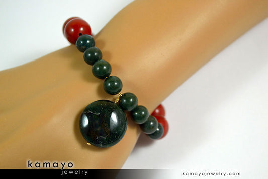 ARIES BRACELET - Coin Green Jasper Pendant and Red Jasper Beads