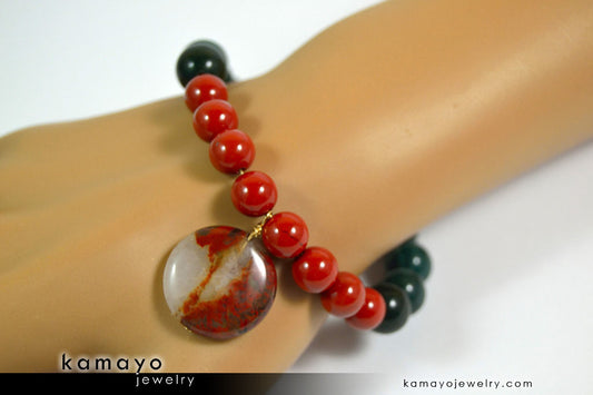 ARIES BRACELET - Coin Red Jasper Pendant and Green Jasper Beads