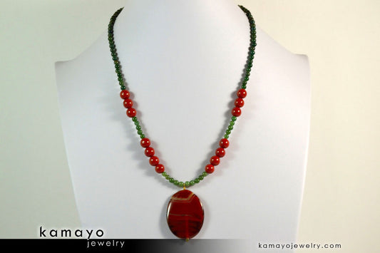 ARIES NECKLACE - Large Oval Red Jasper Pendant and Green Jasper Beads