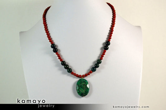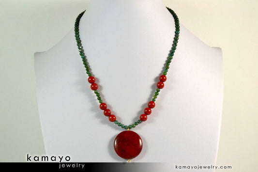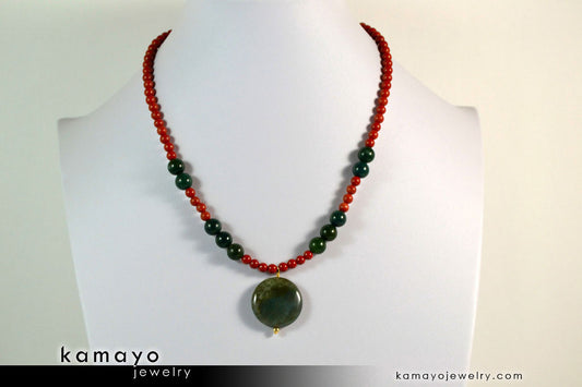 ARIES NECKLACE - Coin Green Jasper Pendant and Red Jasper Beads