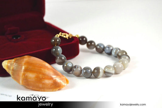 BOTSWANA AGATE BRACELET - Round Grey Botswana Agate Beads
