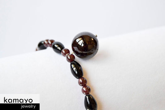 CAPRICORN BRACELET - Red Garnet Pendant and Black Onyx Beads