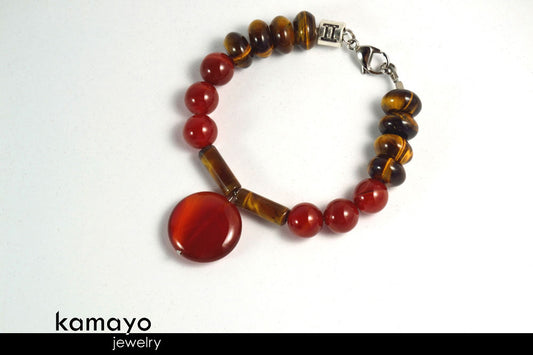 GEMINI BRACELET - Red Agate Pendant and Tiger Eye Beads