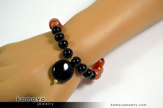 LEO BRACELET - Black Onyx Pendant and Sardonyx Beads