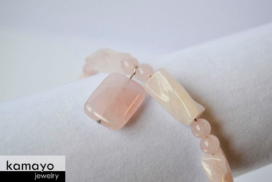 ROSE QUARTZ BRACELET - Natural Pink Pendant and Polished Genuine Beads