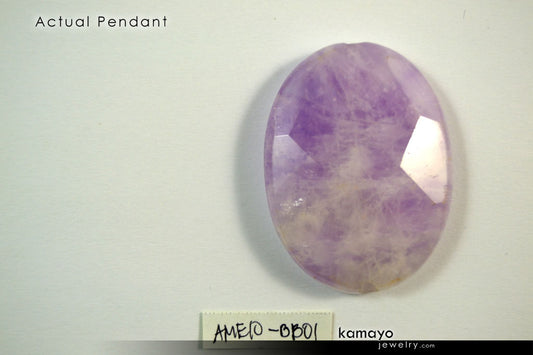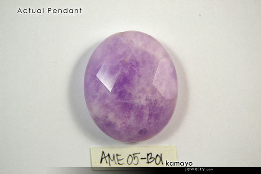 LAVENDER AMETHYST NECKLACE - Large Faceted Oval Pendant and Round Beads