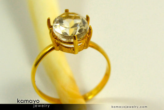 CLEAR QUARTZ RING - 10x8mm Rock Crystal Ring for Women