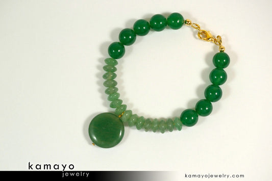 GREEN AVENTURINE BRACELET - Coin Pendant and Dark Green Beads