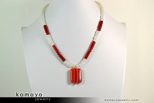 SARDONYX NECKLACE - Rectangle Sardonyx Pendant and White Onyx Beads