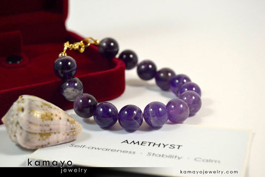 CHEVRON AMETHYST BRACELET - Large Round Natural Banded Amethyst Beads