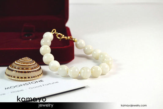 WHITE MOONSTONE BRACELET - Round Real Moonstone Beads