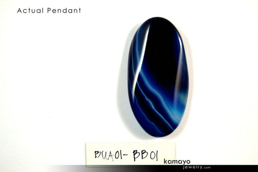 BLUE AGATE NECKLACE - Long Oval Blue Agate Pendant