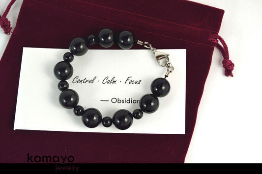 BLACK OBSIDIAN BRACELET - Big Round Beads