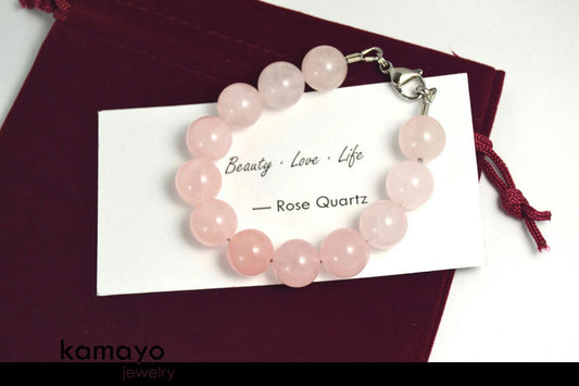 ROSE QUARTZ BRACELET - Large Round Natural Pink Beads